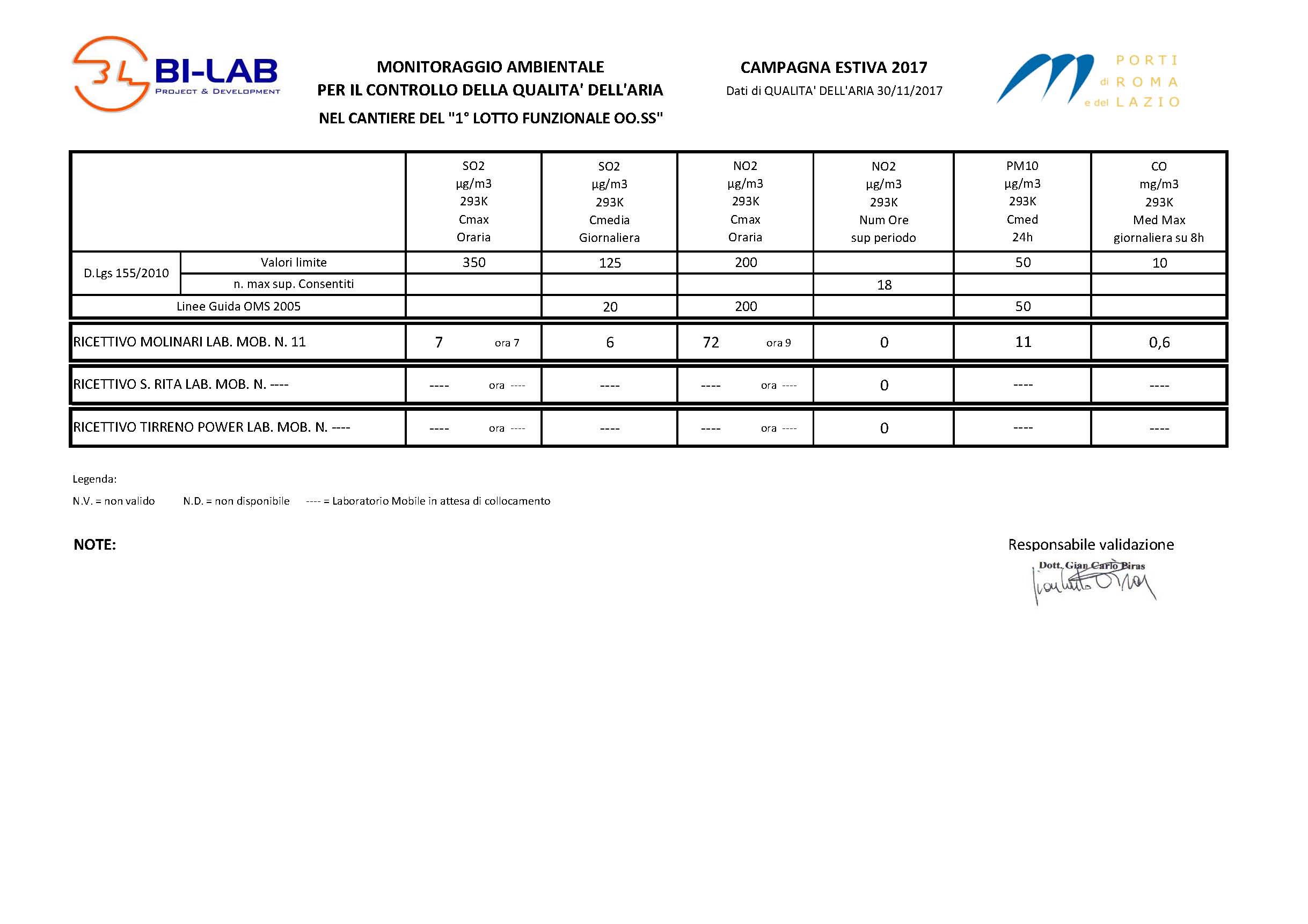 La Prima delle suddette stazioni di misura è stata installata in data 23.07.2013. Il servizio di monitoraggio è stato affidato alla società Bi-Lab Srl.