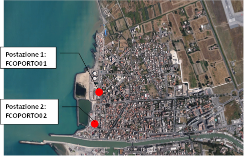 Attualmente sono attive due postazioni di misura. La prima (FCOPORTO01) è posizionata nell’area della Italiana Petroli in via della Pesca, la seconda (FCOPORTO02) è posizionata nell’area portuale di via della Foce Micina.