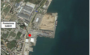 stazione di misura GAE01 (41°13'57.37"N, 13°34'4.45"E): collocata sul terrazzo della stazione dei Vigili del Fuoco nei pressi dell’entrata del porto a circa 30 m dal Lungomare Giovanni Caboto (Strada Regionale 213). L’area è caratterizzata da un intenso traffico sulla Strada Regionale 213, dall’attività portuale e dall’attività della raffineria oltre che dall’attività della stazione dei VVF.